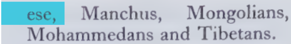 对于“汉满”这对对立的族称,他翻译道“Chinese and Manchus”,即Chinese和满是不同的,并不是同一个民族。这里插一句,虽然笔者不认为现代还有任何人能匹配得上“满族”这个民族概念,“满族”如同鲜卑族已经是个消失的民族,但是笔者不否认“满族”作为一个民族概念在概念上是存在的,而被支共冠名于汉族穆斯林头上的“回族”则连民族概念都是虚构的,至于谁能匹配上这个伪概念更是无从谈起。