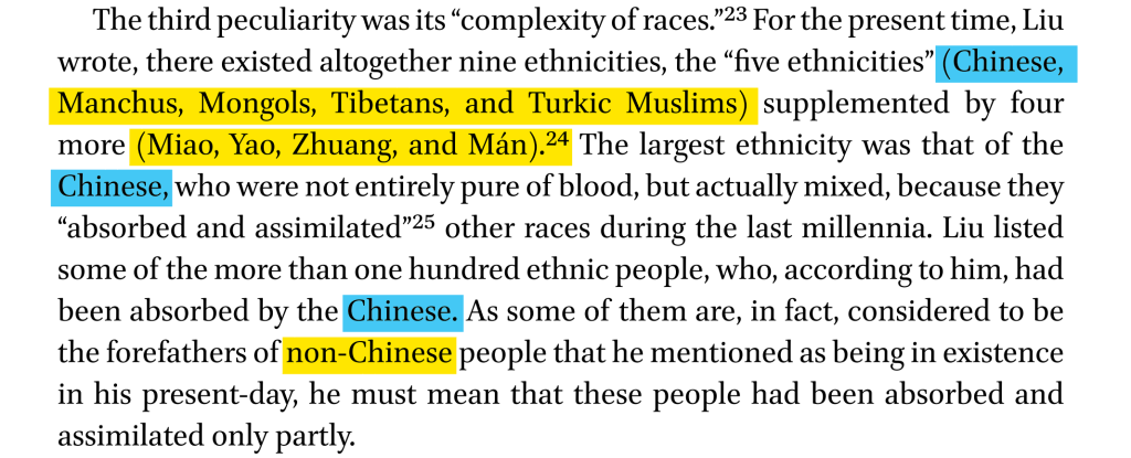 世界顶级学术出版社荷兰博睿学术出版社在2017年出版的《Nation and ethnicity: Chinese discourses on history, historiography, and nationalism (1900s-1920s)》的书记序言里很自然地用“non-Chinese”表达“非汉人”的词义,并列举了“满、蒙、藏、维”几个非汉人民族